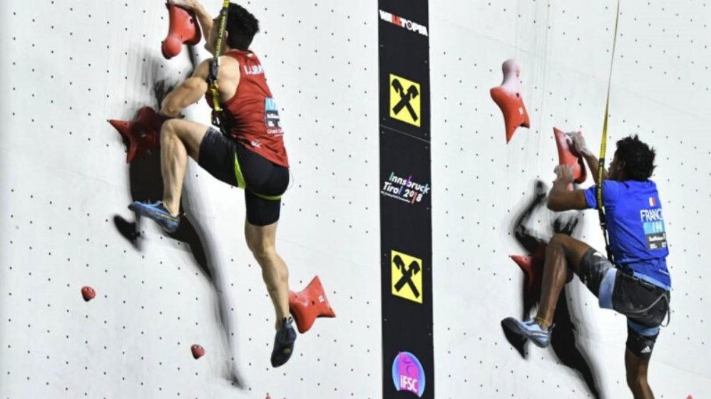 Speed climbing is a discipline in which a standardized 15-meter wall always features the same fixed route, and the goal is to reach the top as quickly as possible. Competitors ascend the nearly vertical wall in about 6 seconds it's incredibly fast. This discipline demands tremendous strength and speed.
