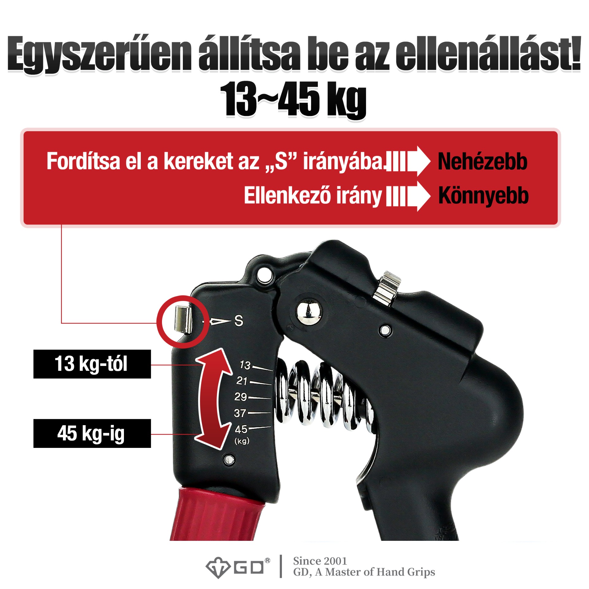 Széles ellenállás-beállítási tartomány 13 és 45 kg között.