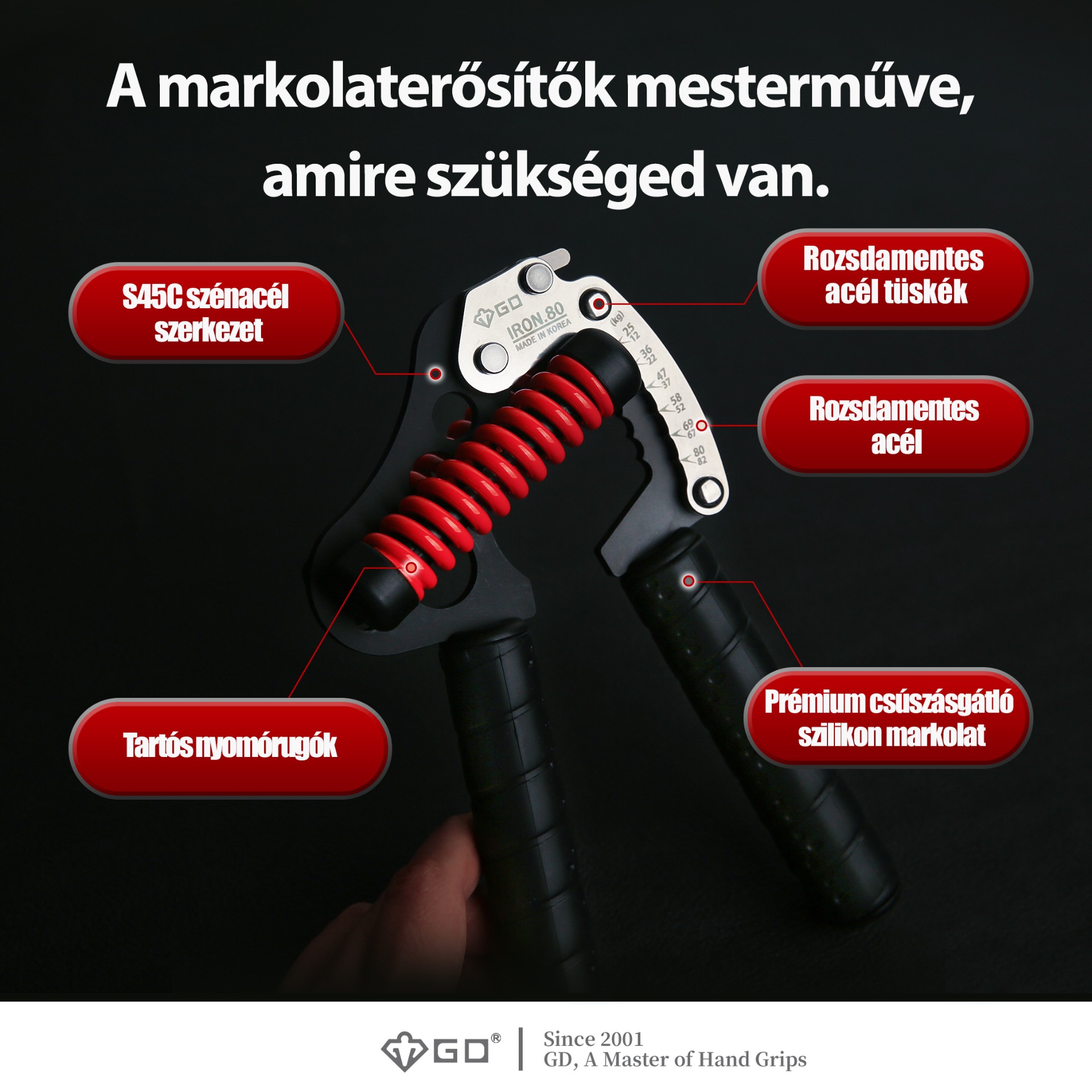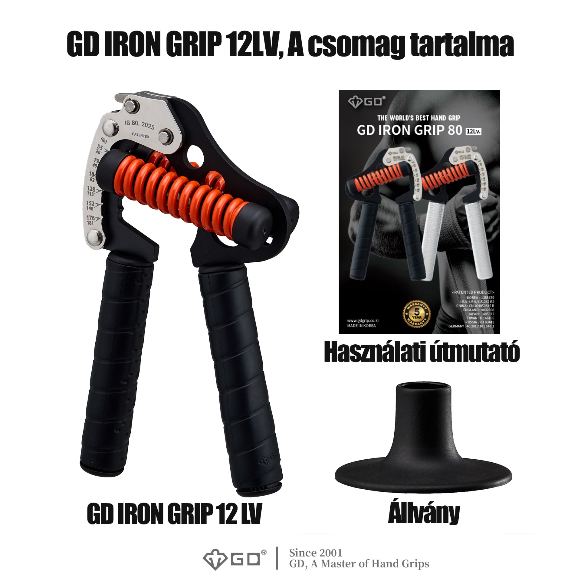 Minden GD terméket saját dél-koreai üzemünkben tervezünk, fejlesztünk és gyártunk. A GD Iron Grip SZABADALMAZTATVA van (szabadalmi szám: NO. US 9,415,262 B2), hogy megvédjük és biztosítsuk a legjobb szolgáltatásokat, amelyeket vásárlóink megérdemelnek.