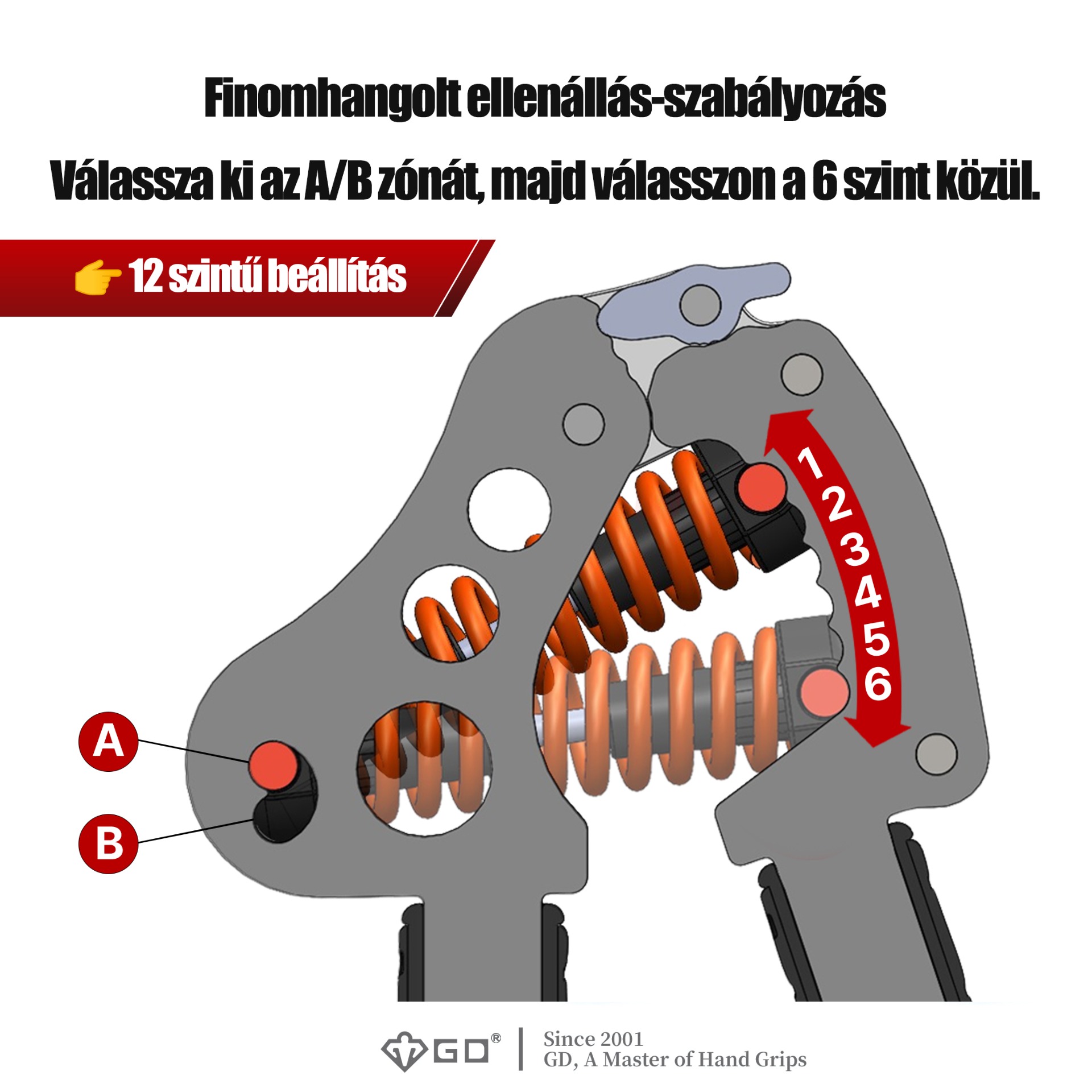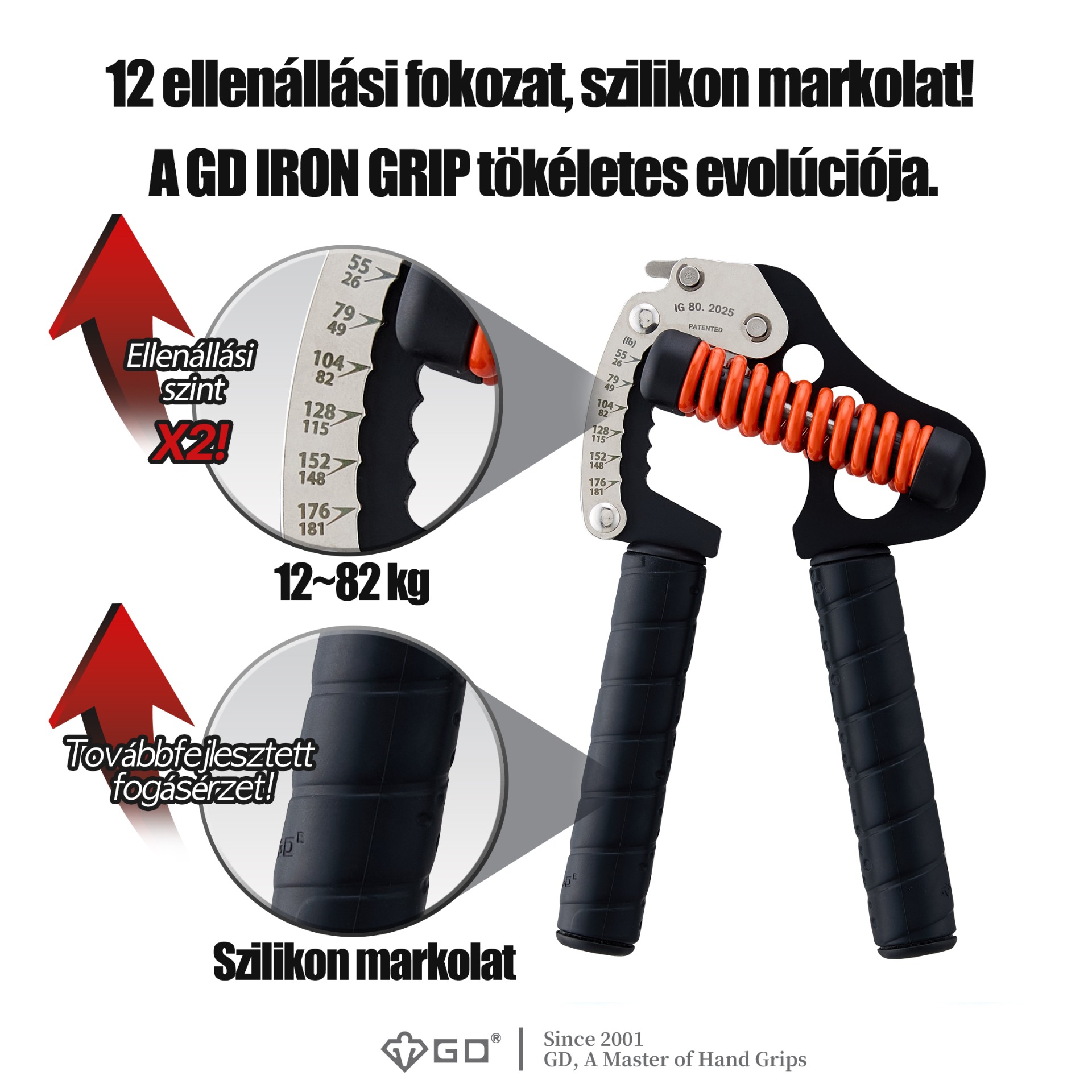 12 állítható ellenállási szint, 12-től 82 kg-ig! Bárki, kortól és nemtől függetlenül, törődhet az egészségével a GD egyetlen erősítőjével.